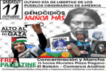 La consigna central de la convocatoria —”Genocidios NUNCA MÁS”— expresa el rechazo a las políticas de exterminio y despojo que se replican en distintos contextos. Entre los motivos que impulsan la jornada se destacan el pedido de alto al genocidio del pueblo palestino, la denuncia de desalojos y atropellos contra los Pueblos Originarios, y el repudio al ataque ilegal de fuerzas sionistas contra la flotilla humanitaria Global Sumu, secuestrada por intentar romper el cerco de hambre y muerte impuesto por Israel en Gaza. “Detener esta masacre depende de todxs”, afirman los convocantes.
