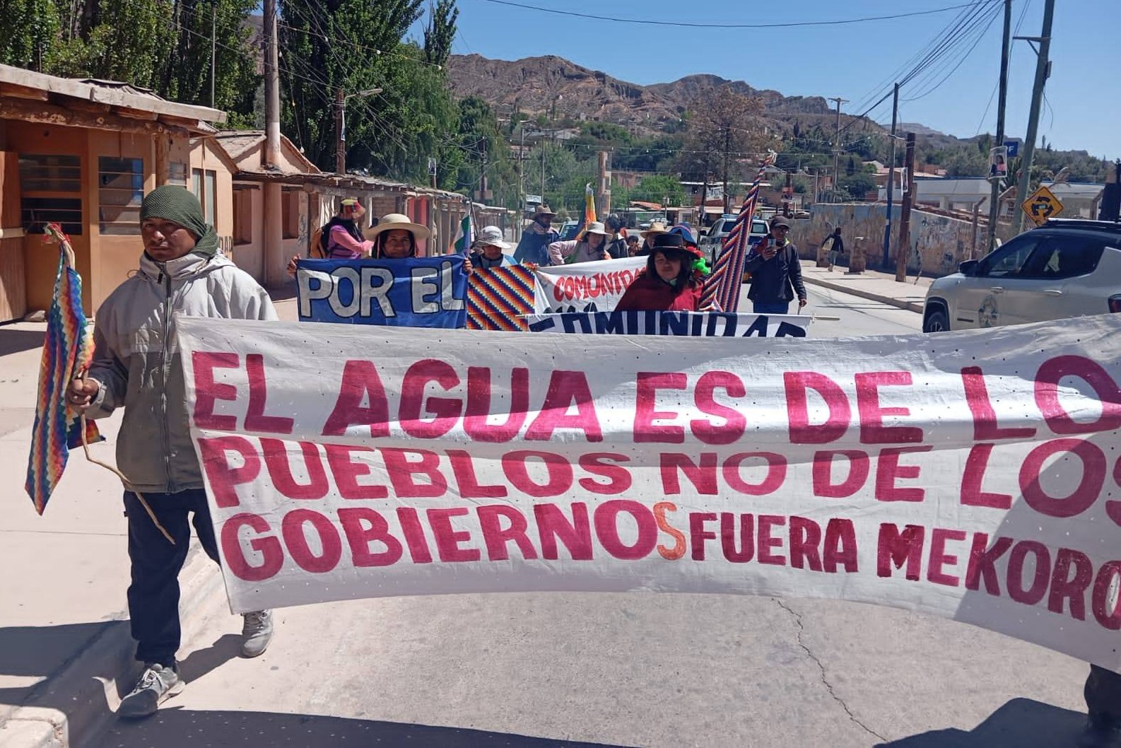 Ahora Mekorot se quiere meter, quiere venir a enseñarnos a usar el agua, cuando nosotros sabemos cómo hacerlo, porque ha sido transmitido de generación en generación por nuestros abuelos: cómo cuidar nuestro territorio, cómo cuidar nuestras cosas. ¿Cómo puede ser que venga alguien que, en este momento, es el asesino de otros hermanos y hermanas, venga a enseñarnos a nosotros? Eso es lo que están permitiendo este gobierno provincial y este gobierno nacional. Son unos seres inconscientes, inhumanos.