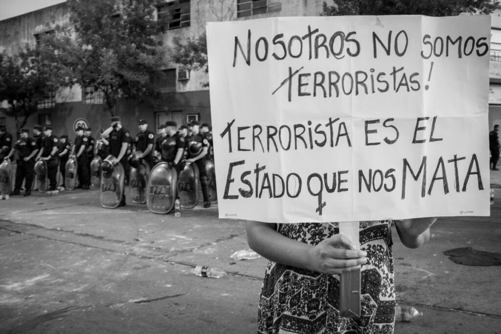 La declaración enmarcó la lucha actual en una línea histórica de resistencia: “El Pueblo Mapuche resiste desde antaño a los diferentes invasores bajo el nombre del Estado, empresas o particulares que nos despojaron del territorio, asesinaron a nuestra gente e impusieron una nueva forma de pensar y concebir la naturaleza. Eso es terrorismo”. Santana ejemplificó el concepto al señalar: “El terrorismo, en el ejemplo más claro, son los garrotazos de Bullrich contra los jubilados todos los miércoles”, en referencia a la represión sistemática de las protestas frente al Congreso. “Nos persiguen judicialmente buscando deslegitimar nuestra lucha y la de todas las personas que comprenden el engaño del gobierno”, expresó, e instó a la sociedad a informarse más allá de los discursos oficiales.
