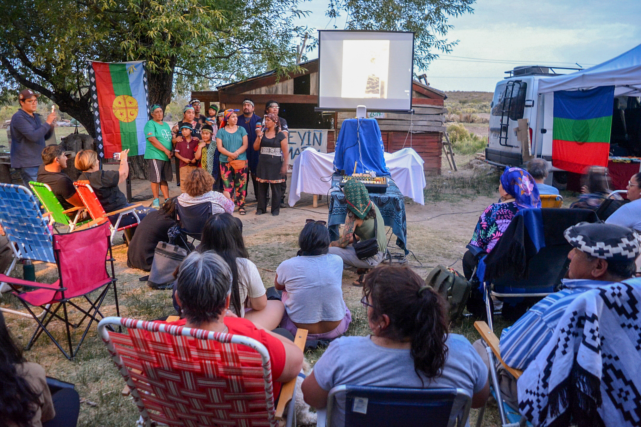 Con una nutrida grilla de actividades, el chrahün (encuentro) reunió a referentes de distintos territorios integrantes de la Coordinadora del Parlamento Mapuche Tehuelche, disidencias y miembros de asambleas socio ambientales. Hubo espacio para jugar al palin, para el “nguchram” (conversa) a cargo de la lamnguen e historiadora y docente local Laura Manquel, quien alrededor del cuchral (fuego) reflexionó acerca de la negación del relato oficial sobre la existencia de un campo de concentración en esta localidad, algo que el documental rebate contundentemente.