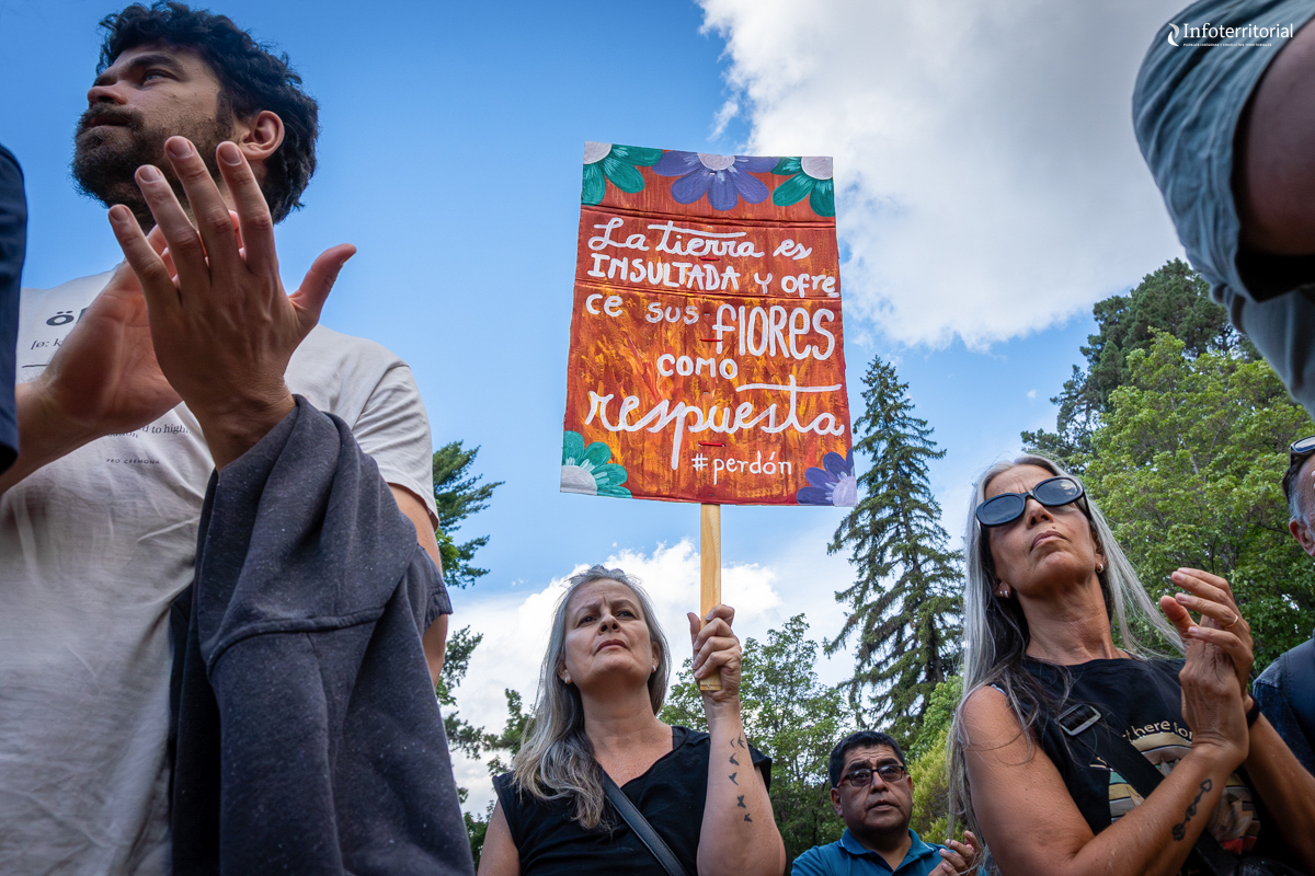 La movilización se concentró en la plaza San Martín, donde se recibieron donaciones destinadas a los afectados y a los trabajadores que enfrentan el fuego. Con micrófono abierto, integrantes de comunidades mapuche-tehuelche, pobladores del Parque Nacional y vecinos de la ciudad denunciaron la negligencia estatal y remarcaron la necesidad de organizarse y practicar la solidaridad frente a la crisis.