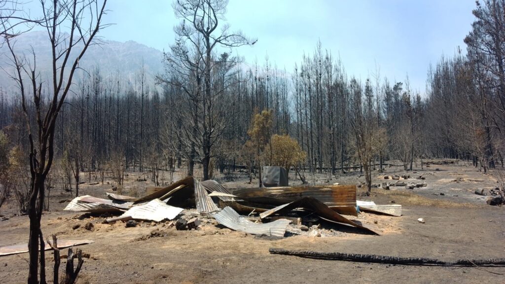 Mientras el insuficiente despliegue de más de 200 brigadistas y 7 aviones hidrantes intenta contener el avance de las llamas en una topografía compleja, el impacto es irreversible para las comunidades locales. Rocío, integrante de la comunidad mapuche Pulgar Huentuquidel, relató a infoterritorial que tras ser evacuados durante la noche, al regresar al campo se encontraron con “las 110 hectáreas de su territorio quemadas totalmente, perdiendo viviendas y animales”. La situación de la vecina comunidad mapuche Monsalve es similar. La ayuda que reciben es de la red autogestiva de los mismos habitantes de la Comarca.