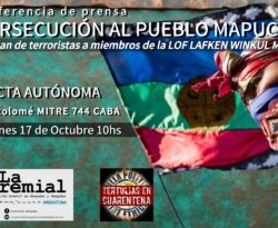 Grave denuncia por persecución al Pueblo Mapuche Este viernes 17 de octubre a las 10 horas, se realizará una conferencia de prensa en la sede